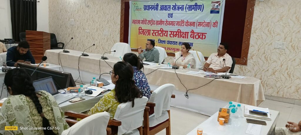 अम्बिकापुर 19 जून 2025/ प्रधानमंत्री आवास योजना (ग्रामीण) की समीक्षा बैठक बुधवार को जिला पंचायत के मुख्य कार्यपालन अधिकारी श्री विनय कुमार अग्रवाल की अध्यक्षता में जिला पंचायत सभाकक्ष में आयोजित की गई। बैठक में बताया गया कि योजनान्तर्गत वित्तीय वर्ष 2024-25 में जिले में स्वीकृत 31595 आवास में से 6683 आवासों को पूर्ण कर लिया गया है तथा पीएम जनमन योजनांतर्गत स्वीकृत 2565 में से 531 आवास पूर्ण कर लिए गए हैं।